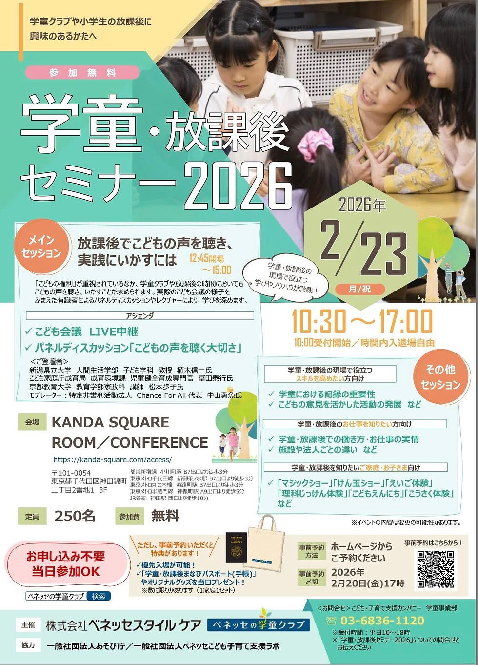 昨年実施し大変好評だったベネッセの「学童・放課後セミナー」を、2026年も開催します!!
